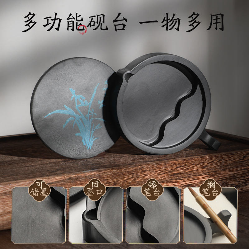 曹一阁砚台书法专用带盖天然原石墨池安徽歙砚火锅砚台初学者毛笔墨汁可研磨墨墨碟墨盘文房四宝套装书法用品
