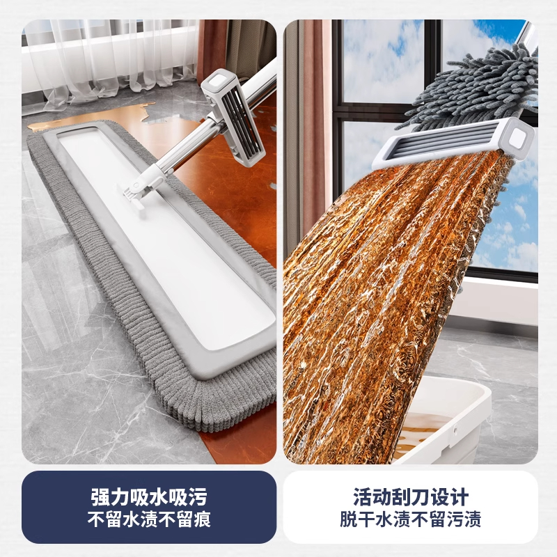 雪尼尔刮水平板拖把免手洗懒人拖布吸水家用擦地替换布大号一拖净