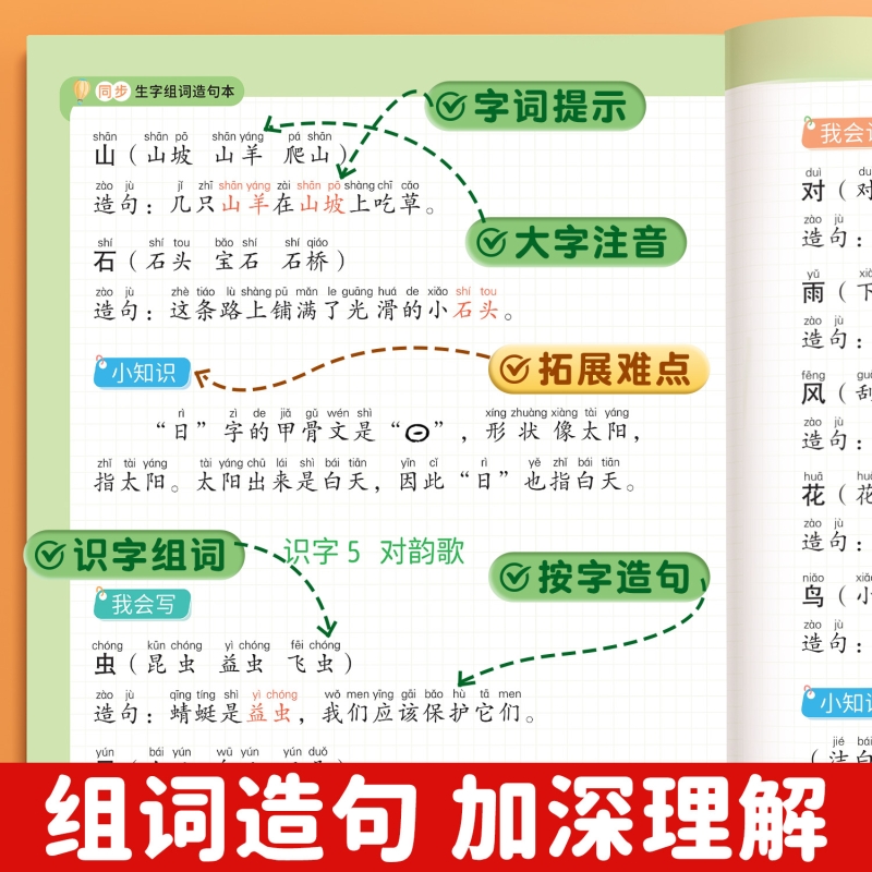 【抖音同款】斗半匠一年级语文同步生字组词造句本人教版二年级三四五六年级上册下册小学基础知识大全汉字词语句子练习册专项训练