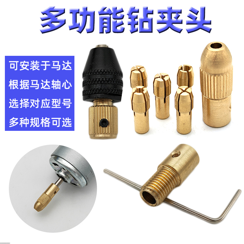 黄铜自紧钻夹头电磨电钻钻头夹diy微型迷你小电机钻头夹具连接杆