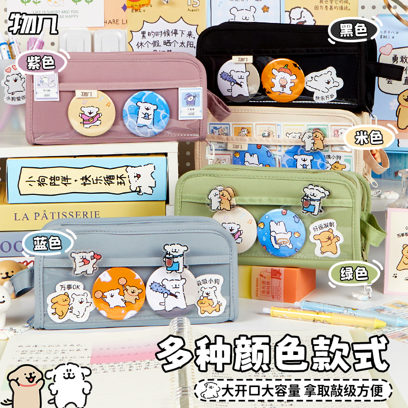 物几 线条小狗大容量透明2025年超火笔袋隐藏痛层文具盒吧唧diy材料初中生男款铅笔盒高颜值多功能文具收纳袋