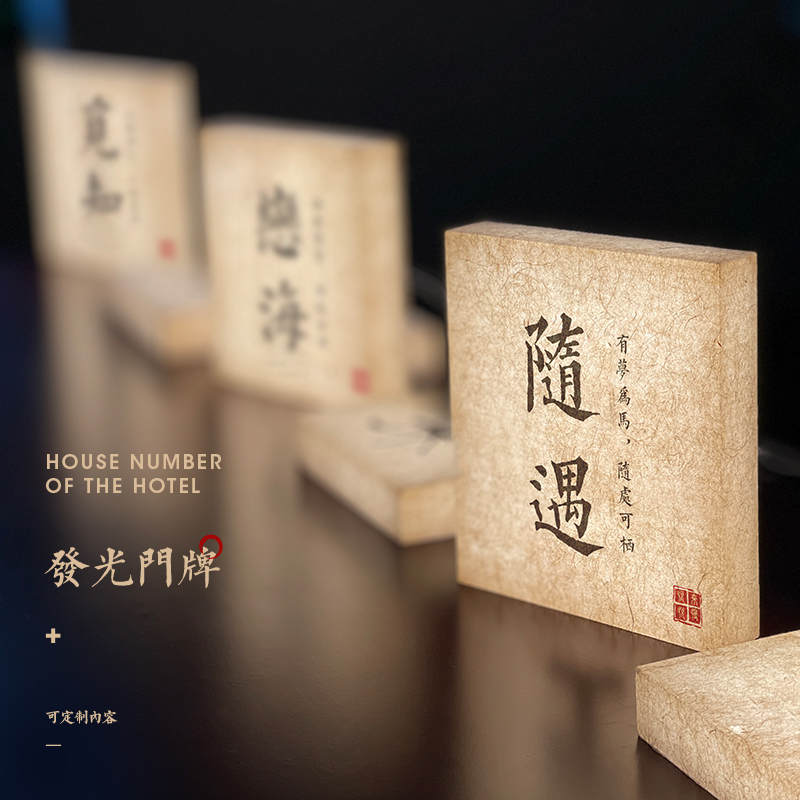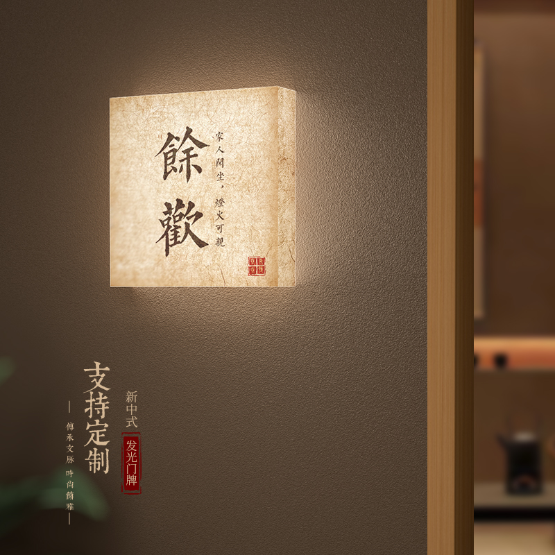 中式文雅书法门牌压克力宣纸传统工艺定制包厢房间发光名字灯牌日