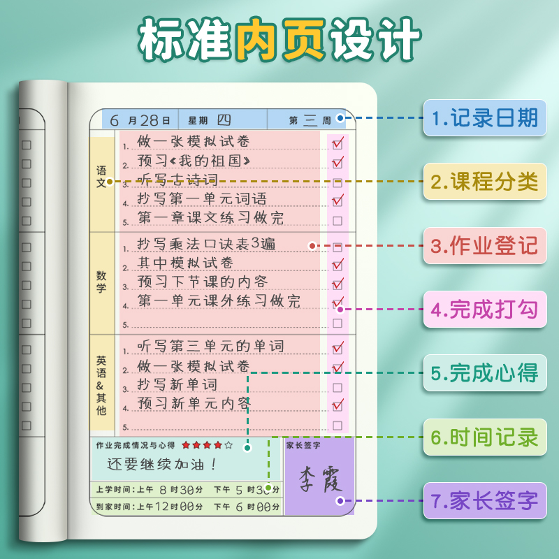 卡通作业登记本小学生专用高颜值一年级用记课堂抄写作业本加厚记作业本笔记家庭作业记录本家校联系本子小号