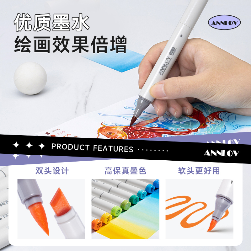 ANNLOV安洛夫酒精油性马克笔软头200色漫画美术专用手绘学生40色肤色专业套装动漫120色设计服装画笔正版彩笔
