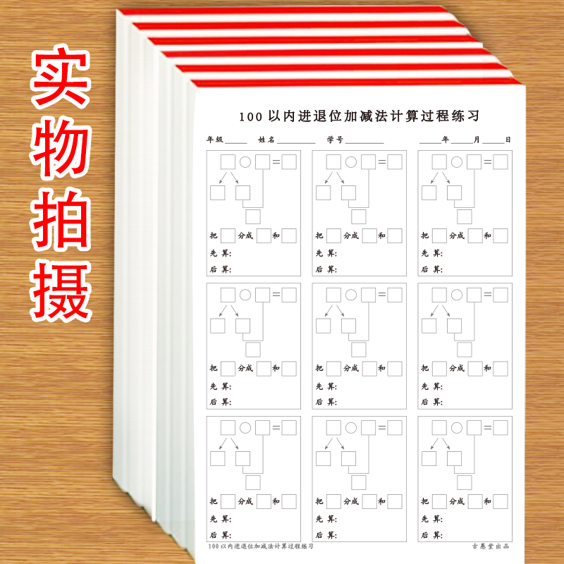 100以内凑十借十进位加法退位减法分步计算俩位数加减一位数俩位数过程练习纸小学生数学笔算口算天天计算纸