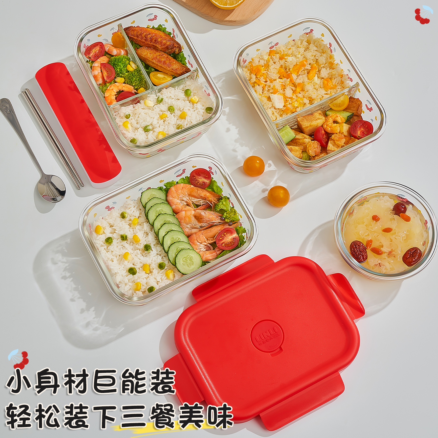 乐扣乐扣玻璃保鲜盒微波炉加热专用饭盒上班族带饭餐盒水果便当盒