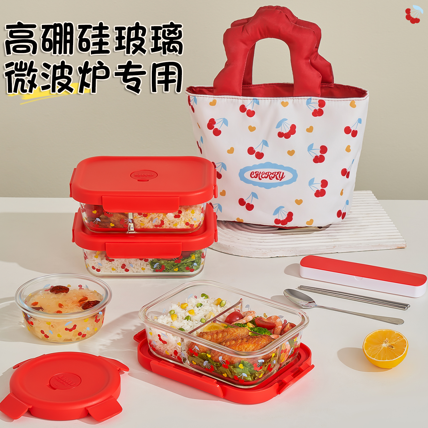 玻璃饭盒可微波炉加热专用上班族带饭装汤餐碗保鲜分隔型便当带盖