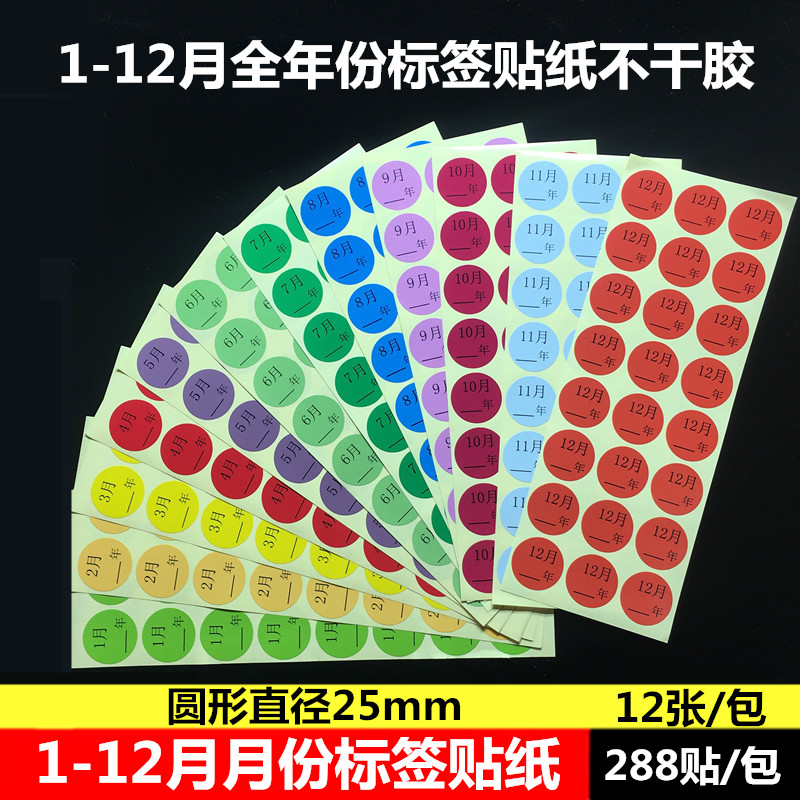 25mm月份20mm50mm月份标签彩色圆形贴纸1-12年月不份干胶标签