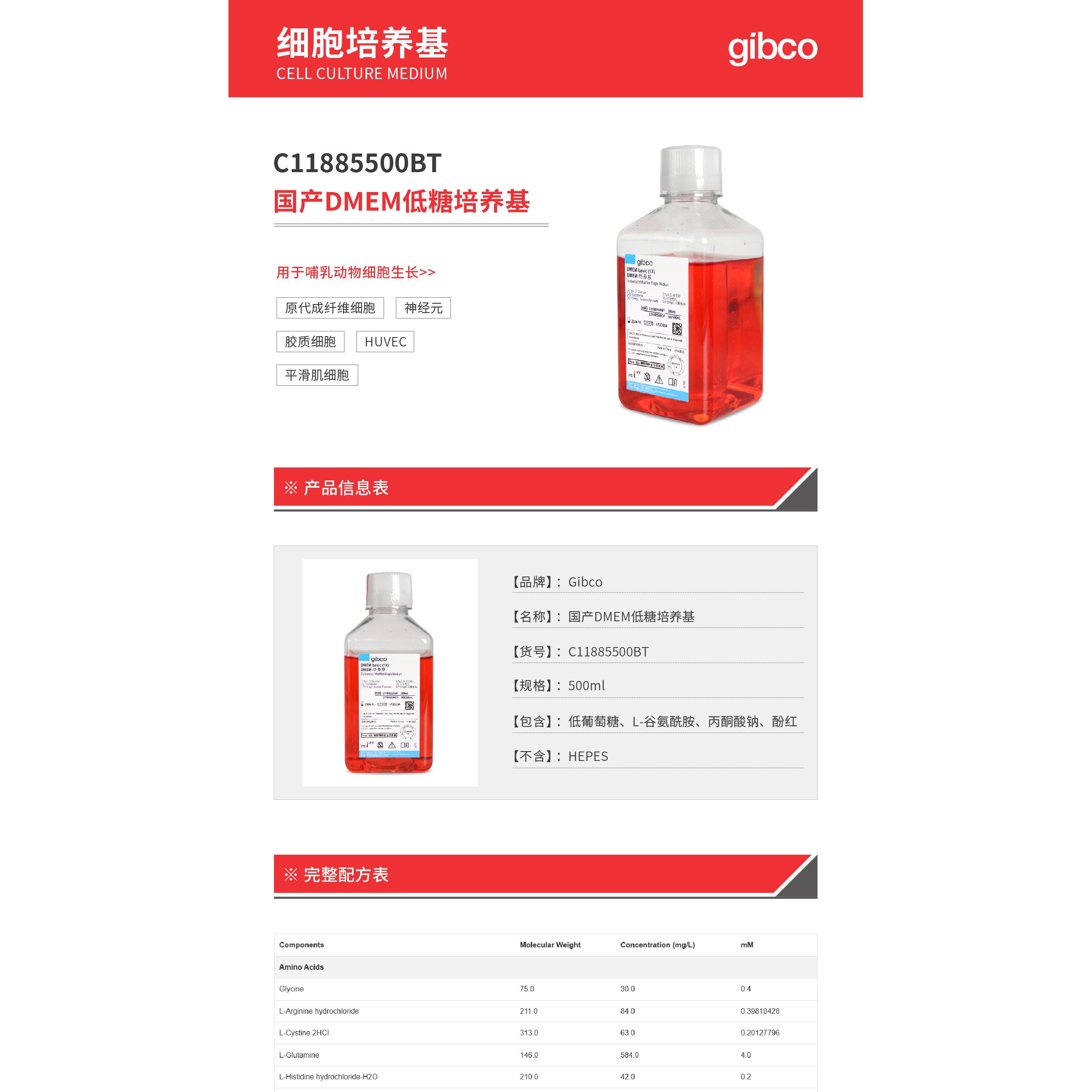 C11885500BT 国产DMEM低糖培养基含L-谷氨酰胺丙酮酸钠不含HEPES
