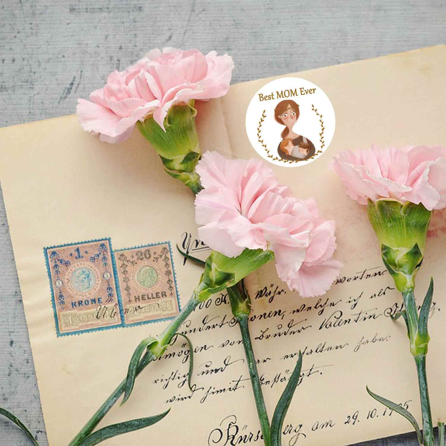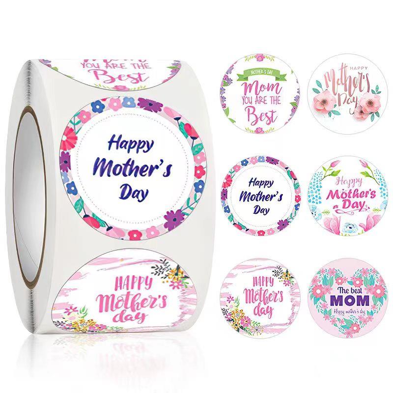 爆款英文母亲节日贴纸装饰礼品系列手账不干 干胶标签圆形封口贴现货