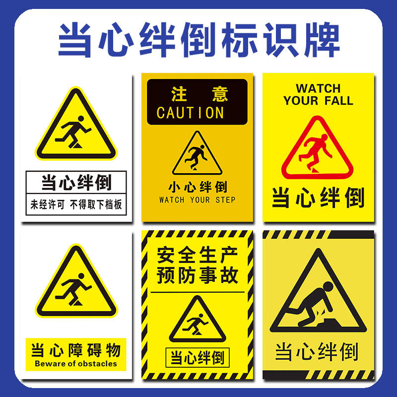 当心绊倒标识牌小心障碍物当心脚下挡板未经许可不得取下挡板行走时请注意安全下方危险温馨提示标示警示标志