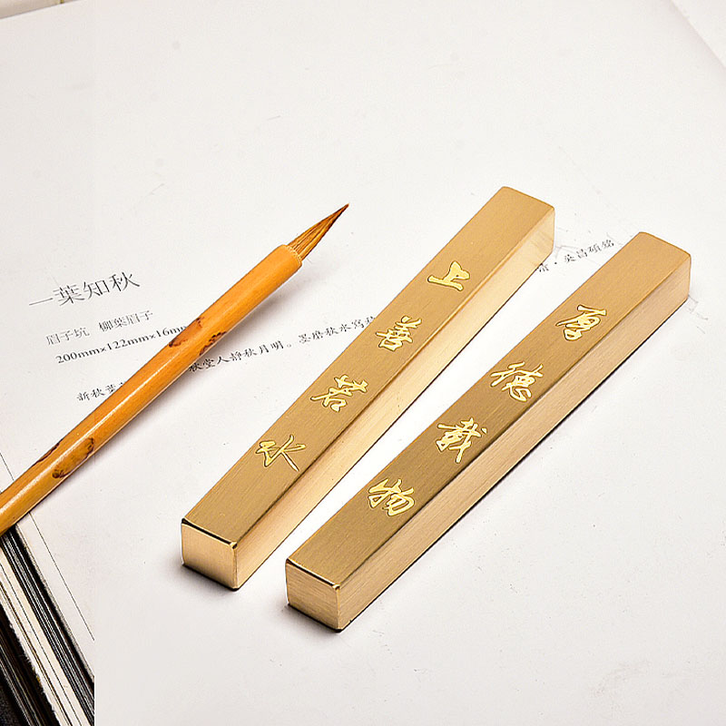 【懿羲堂】实心黄铜书法压条镇尺 铜镇纸 文房四宝压纸小号加厚12厘米 镇尺铜 镇尺金属售价1对可刻字