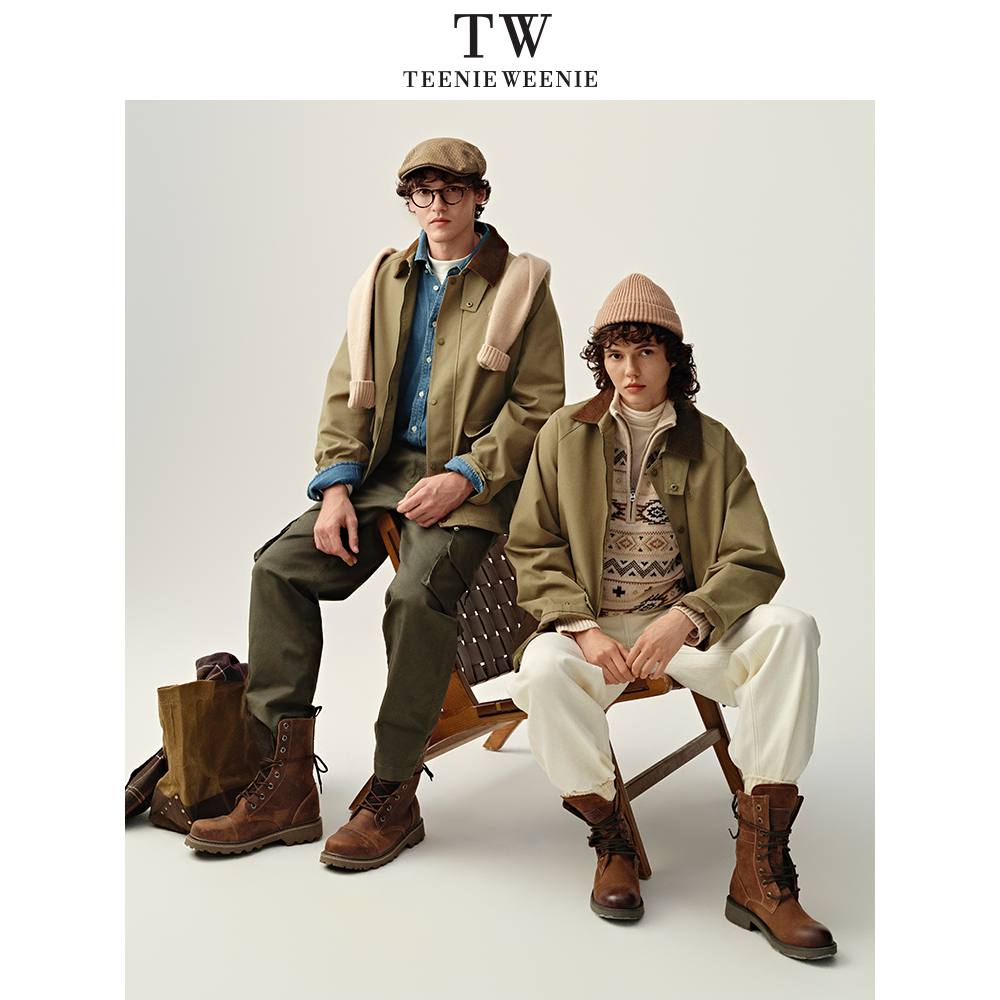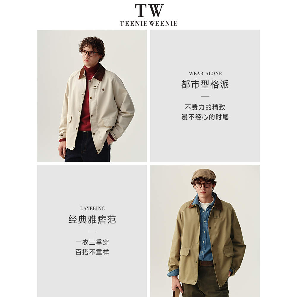 TeenieWeenie小熊男装复古翻领风衣休闲外套秋装宽松撞色夹克男士