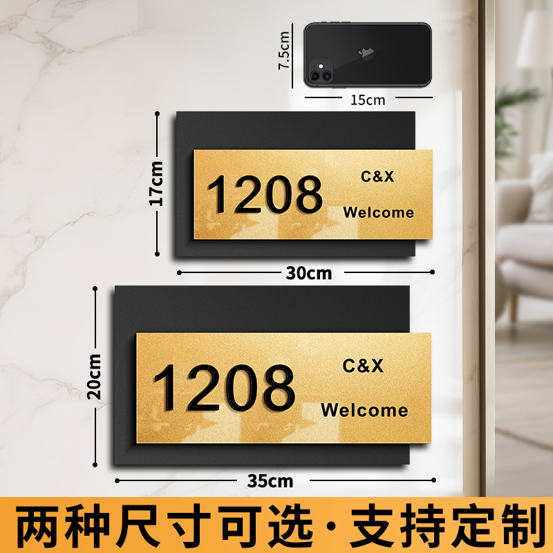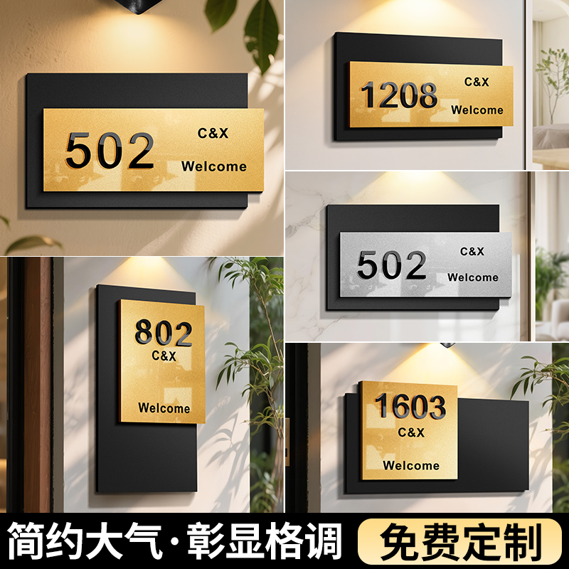 门牌号高级感轻奢创意号码牌家用定制房间数字贴高端大气免打孔家庭自建房装饰挂牌自粘感应灯贴门上风水门号