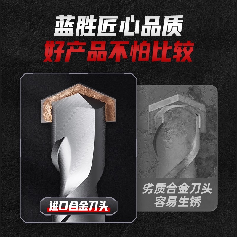 蓝胜加长冲击电锤钻头圆柄方柄穿墙电锺转头混凝土过墙打孔钻孔