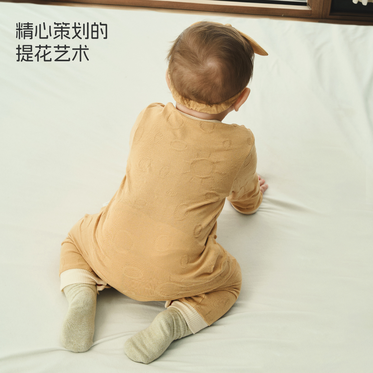 [一地春华]aqpa爱帕婴儿衣服春秋新款纯棉提花宝宝连体衣哈衣睡衣