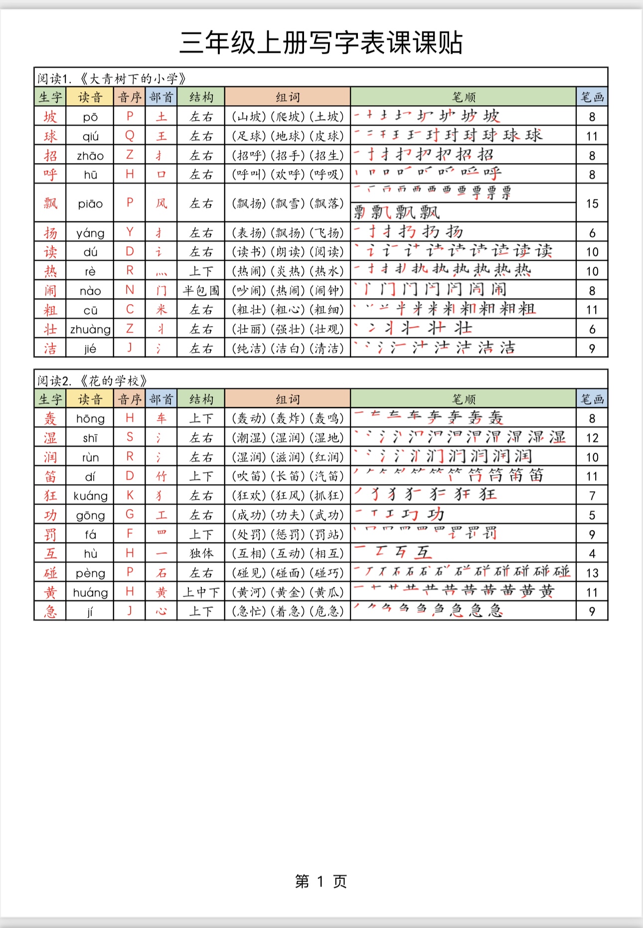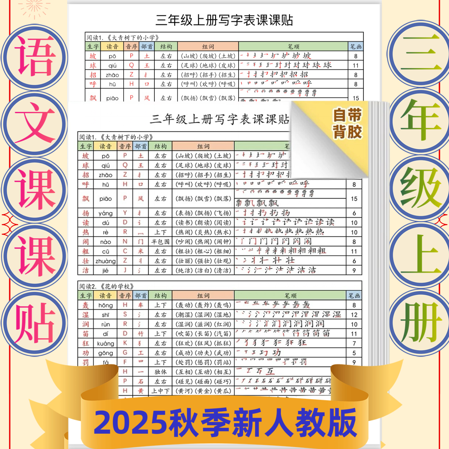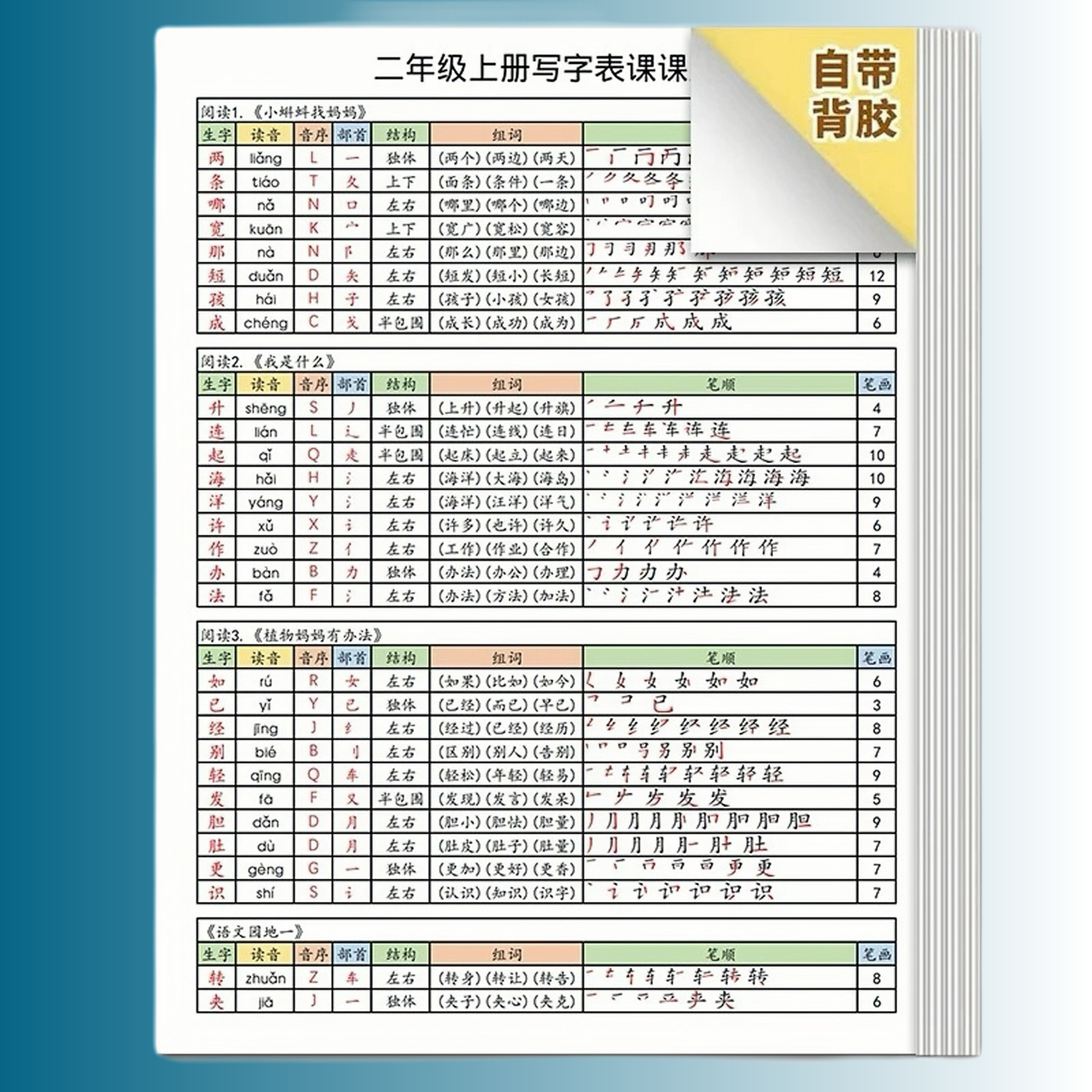 2025秋新版二年级语文写字表课课贴1-5年级拼音笔顺组词音序部首