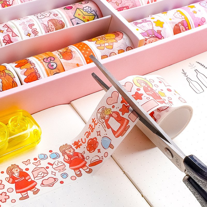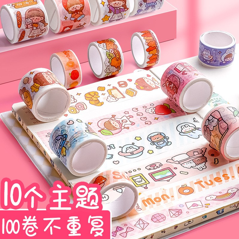 现货速发100卷手账胶带和贴纸胶卷套装彩色和纸儿童少心可爱手帐