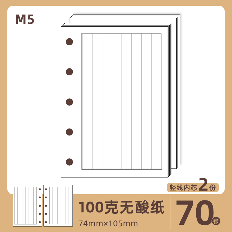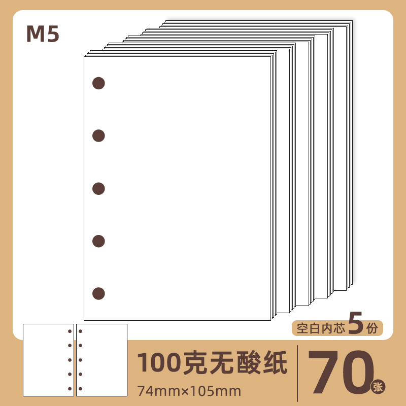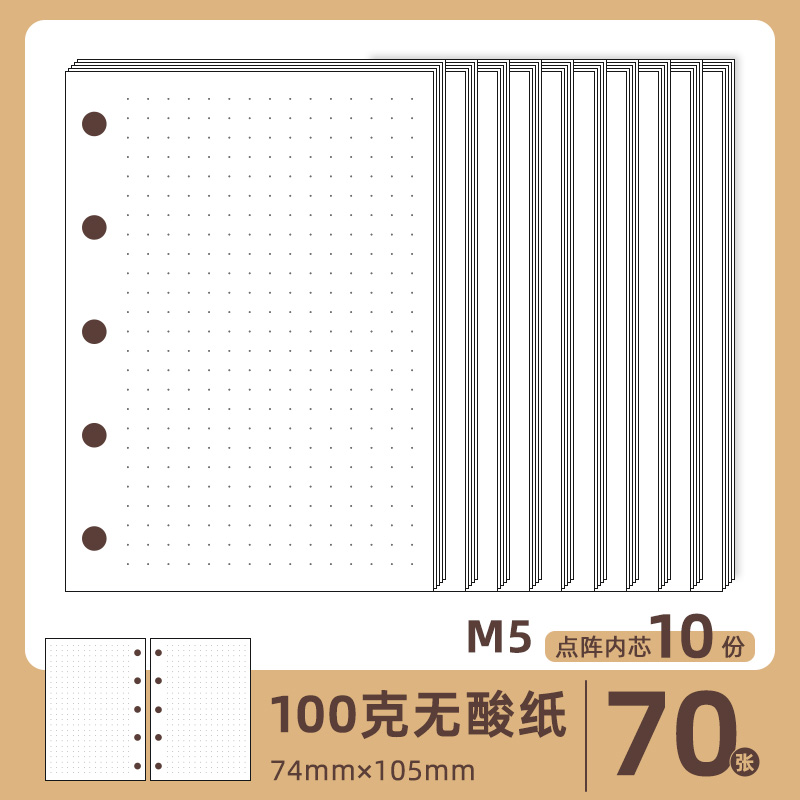 100g无酸纸/m5活页替芯书写更丝滑加厚不易透可替换内页手账本笔记本本子空白点阵竖线方格计划打卡随身便携