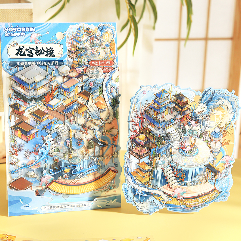 造景贴纸纸先生神话堆叠益智中国传统主题的原创插画创意微缩场景东方贴画解压手帐素材龙宫收纳大尺寸秘境