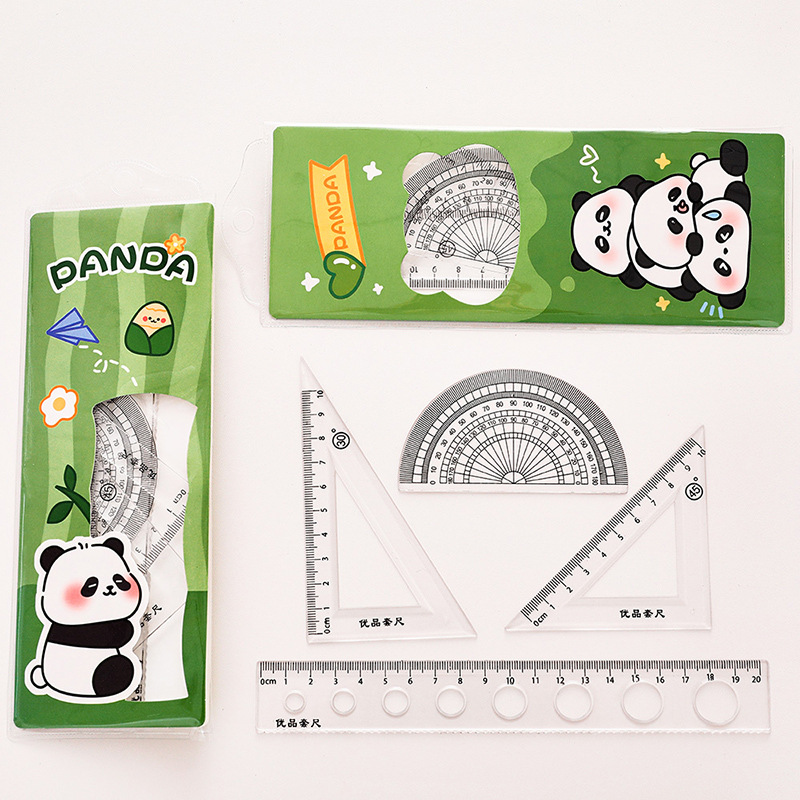 熊猫套尺 可爱绘画三角板量角器4件套学生高颜值套尺六一礼物