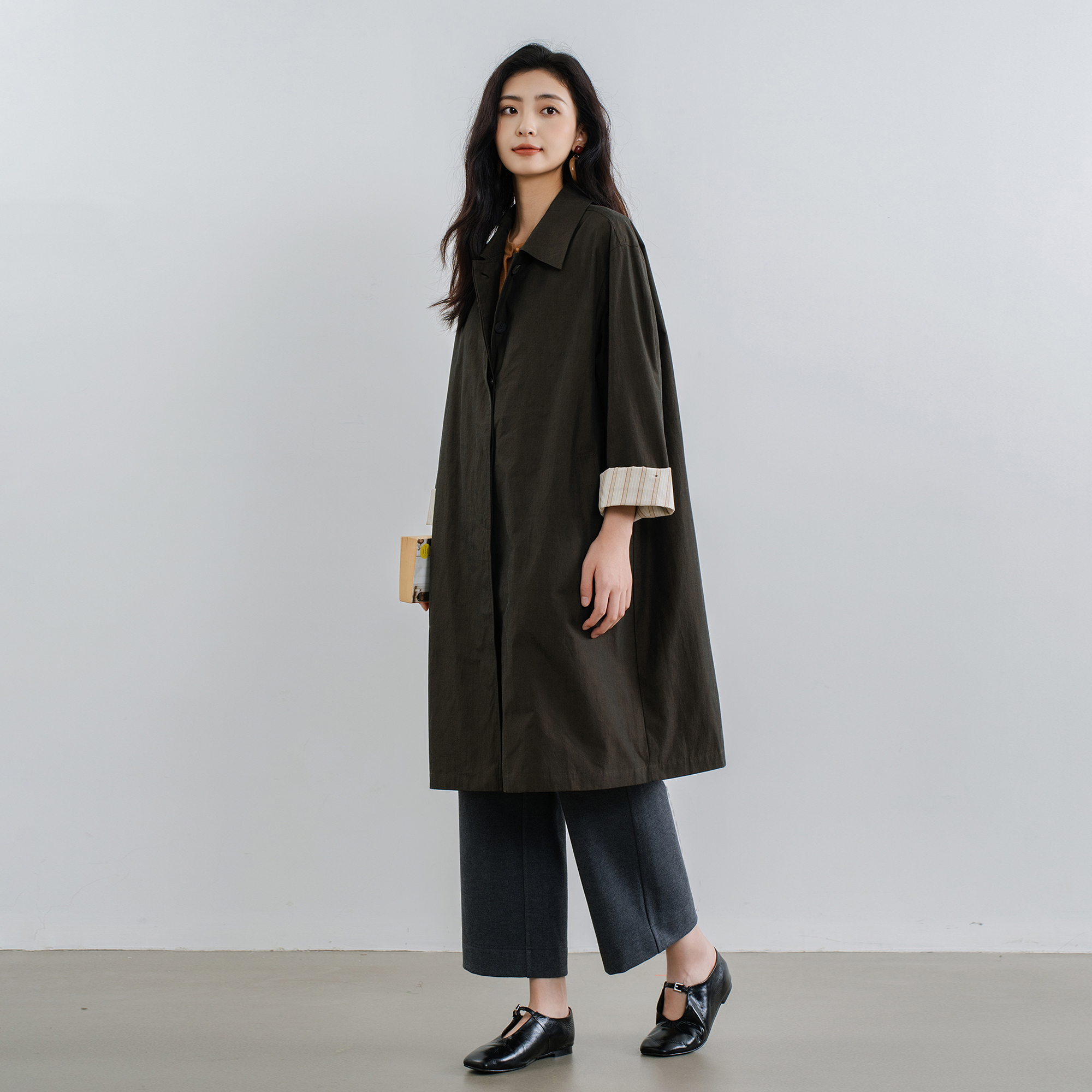 范洛Fano 经典简约慵懒感韩系插肩袖廓形长款风衣外套女秋季新款