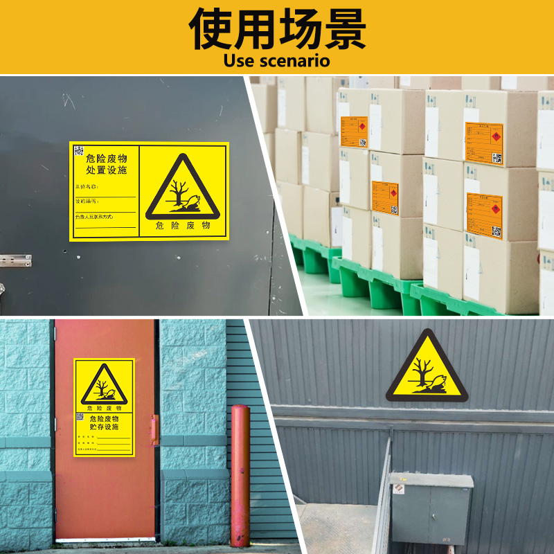 新版危险废物标识牌贴贮存场所危废间仓库暂储存间有毒警示牌国标三角危险品标志警告废弃物标签一般固体标志