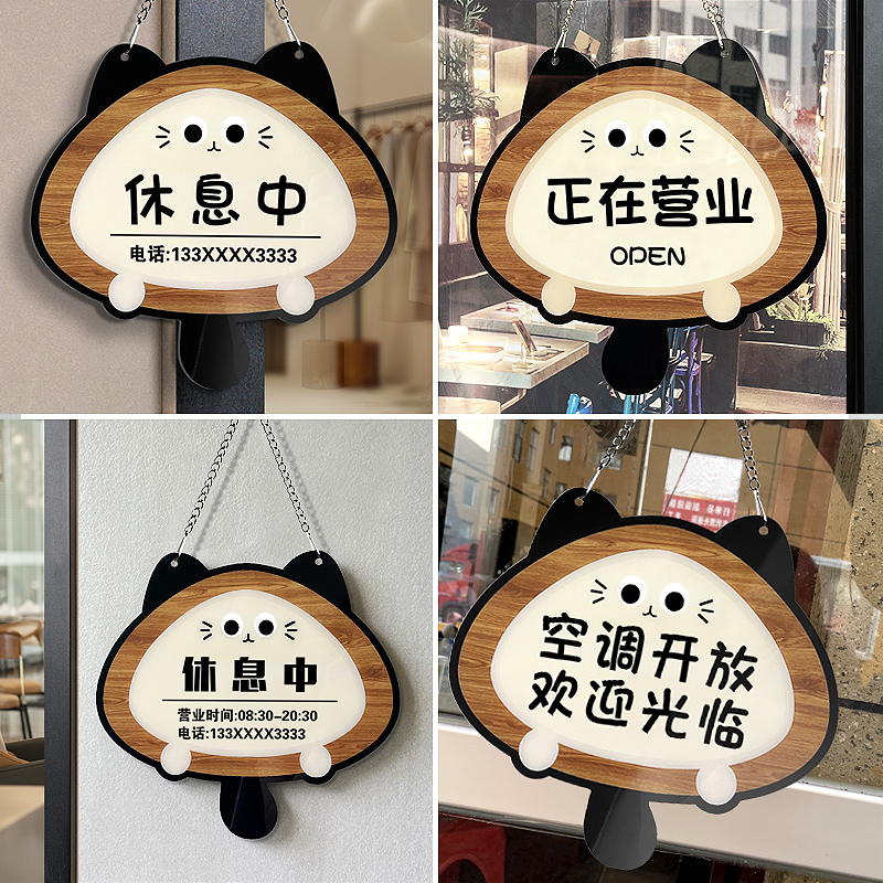 亚克力营业时间告示牌定制店铺玻璃门挂牌门口上下班时间提示标识牌服装店理发店餐厅公示牌工作室广告牌订制