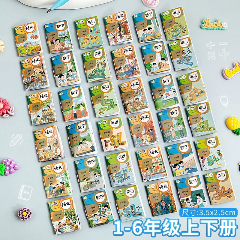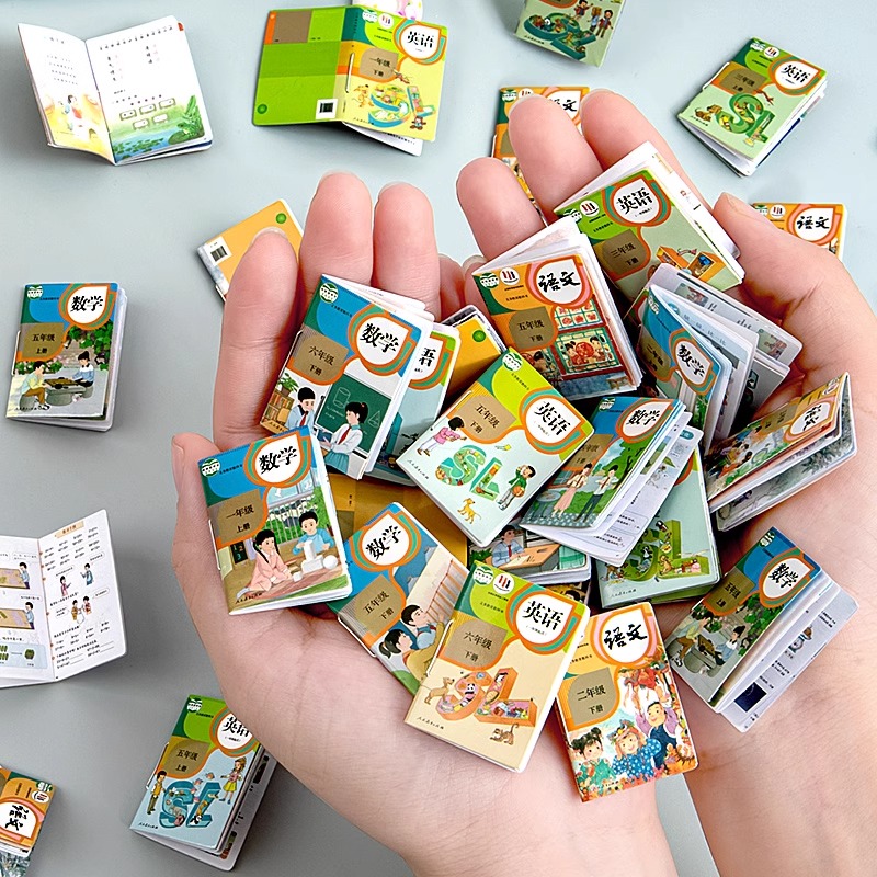 微缩迷你小书本有字小学生课本模型超级小号儿童文具过家家玩具六年级上册下册语文数学英语全套装一年级练习