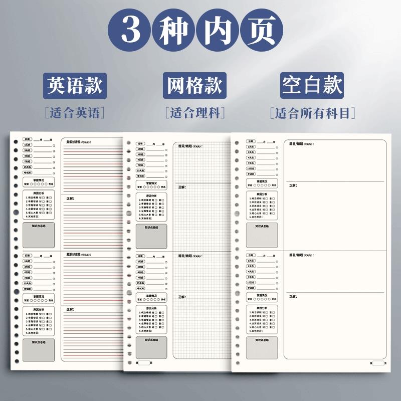B5错题本初中生A4活页可拆卸高中生加厚考研大学生英语专用改错本纠错本集全套小学数学公务员错题整理本神器