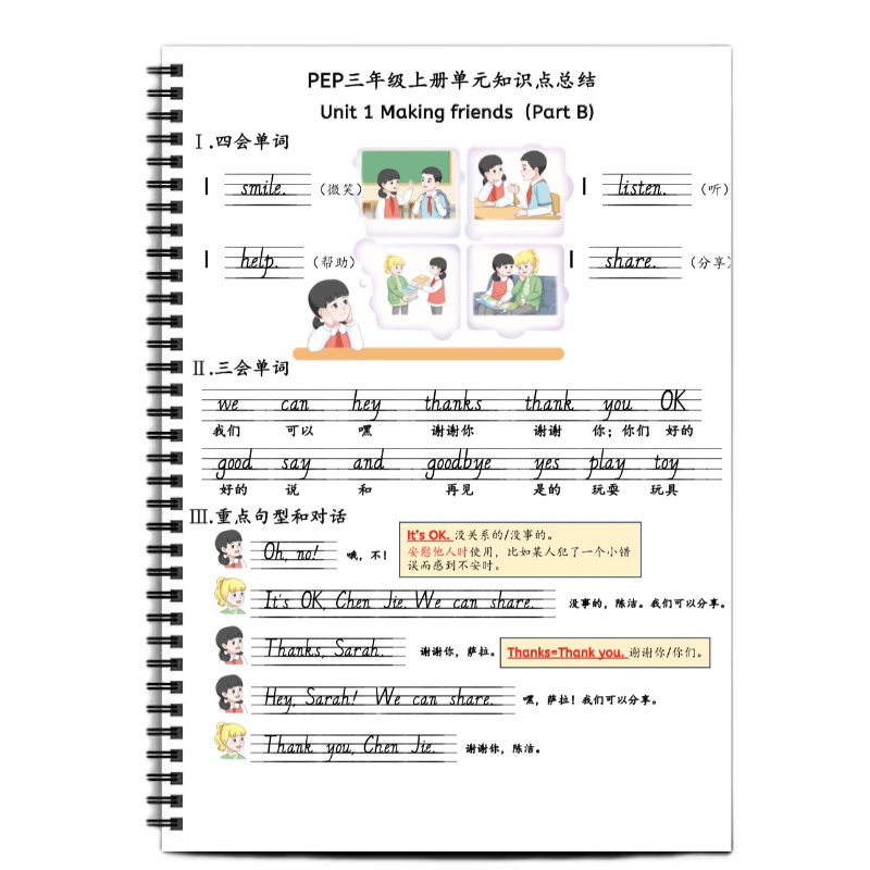 2024人教PEP小学三年级上册英语单元知识点归纳总结同步教材趣味图文英语必背知识点练习题复习题大全期末总复习
