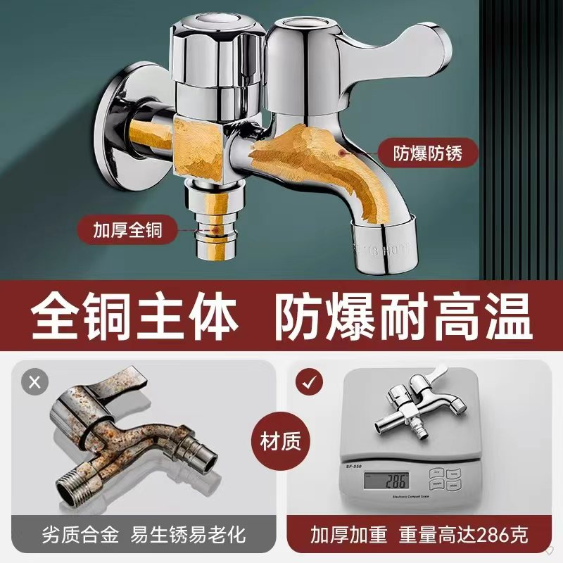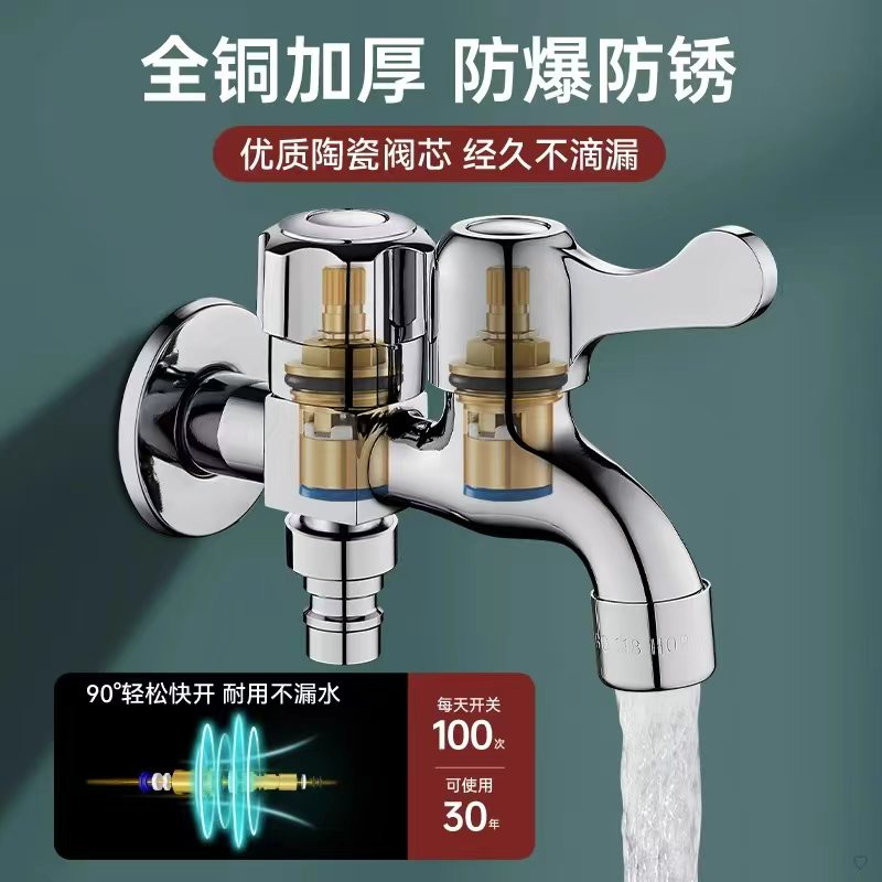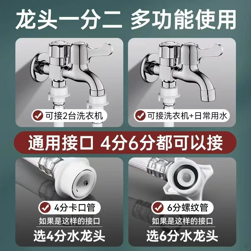 一进二出洗衣机水龙头一分二接头专用德国三通双头双出水4分螺纹