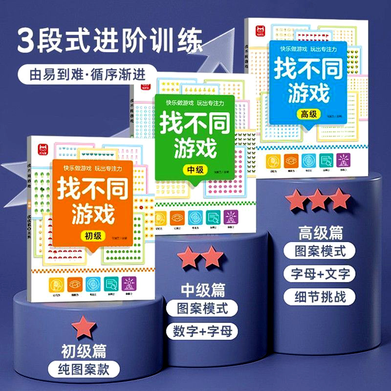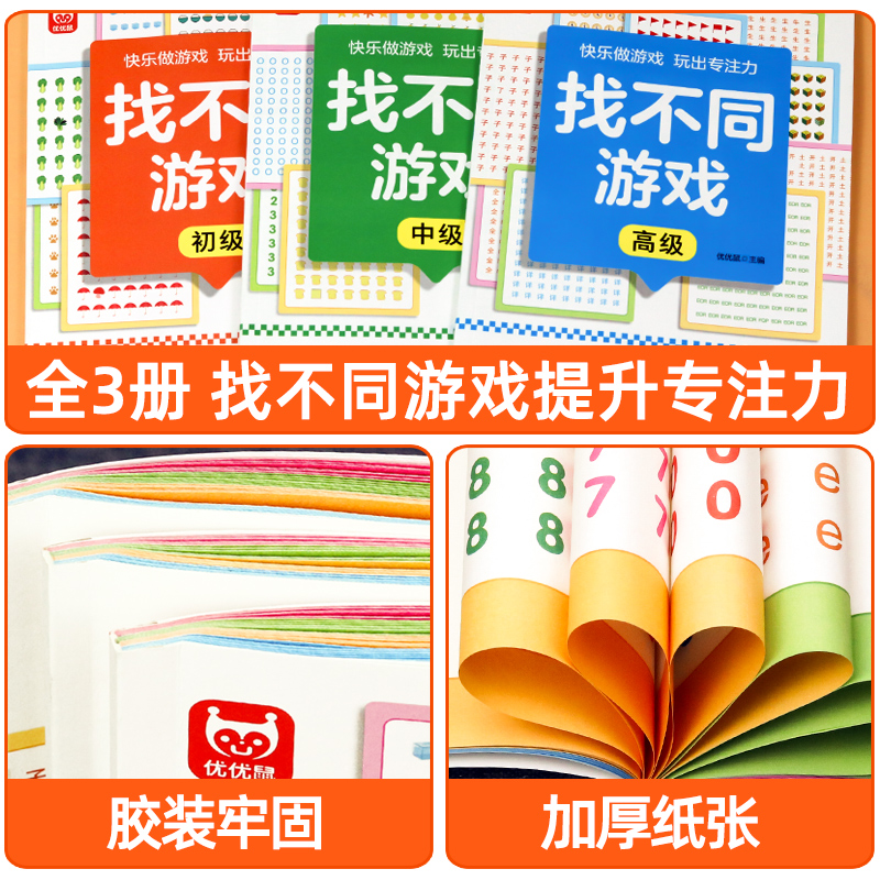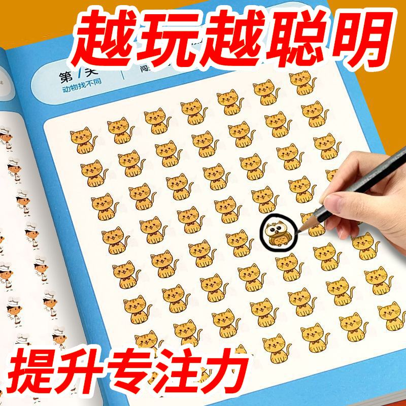 儿童趣味找不同专注力训练2-3-4-5到6岁益智游戏书幼儿观察力注意力思维训练训练神器幼儿园宝宝全脑开发玩具书籍找不动的书绘本