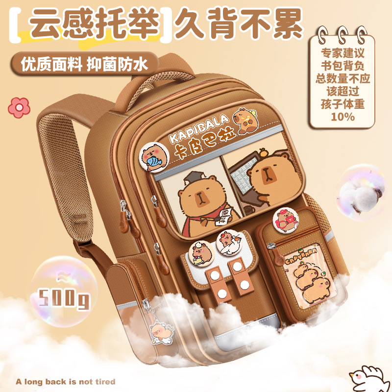 卡皮巴拉书包新款大容量水豚儿童护脊双肩包减负耐脏三四五六年级小学生开学文具大礼包实用背包男孩学习用品