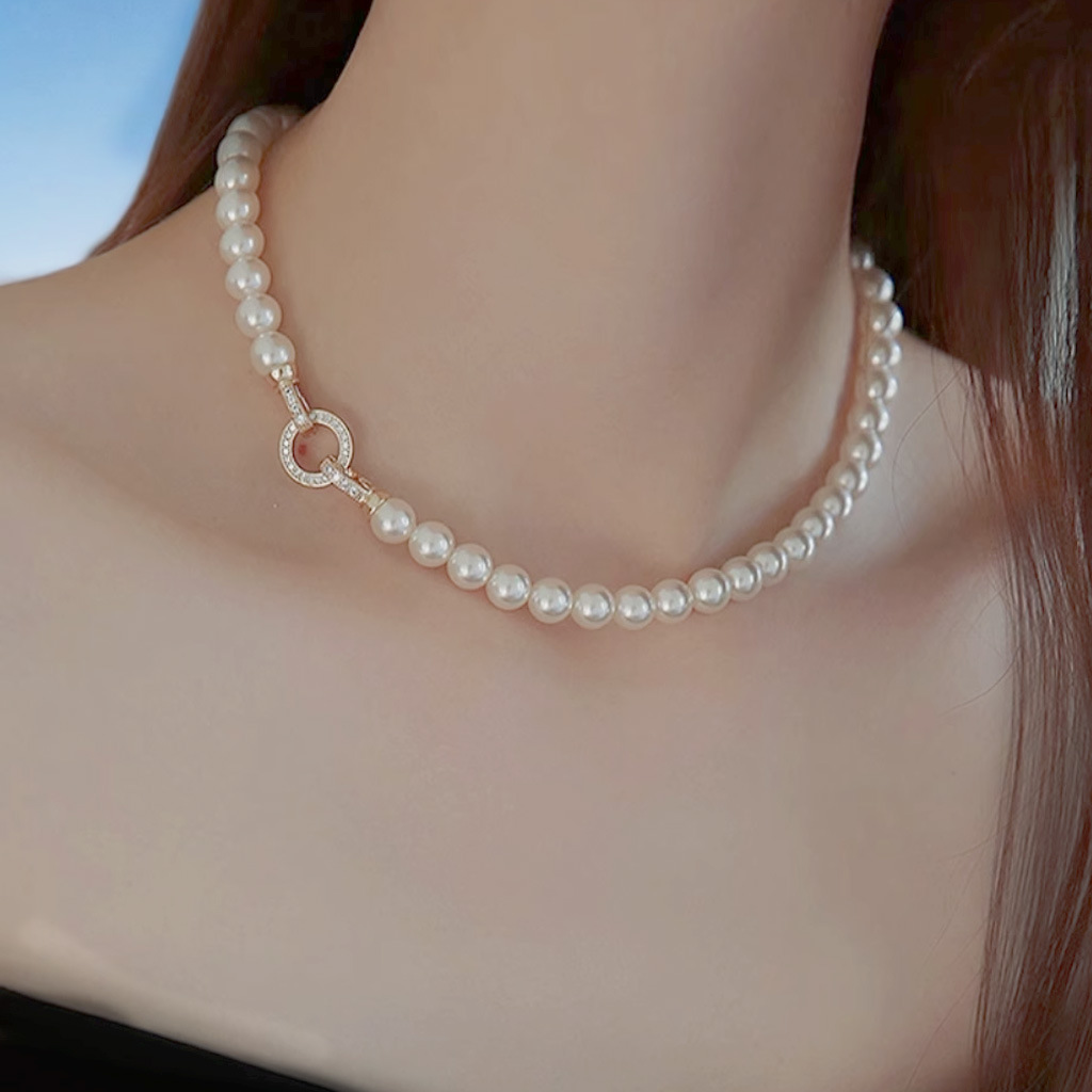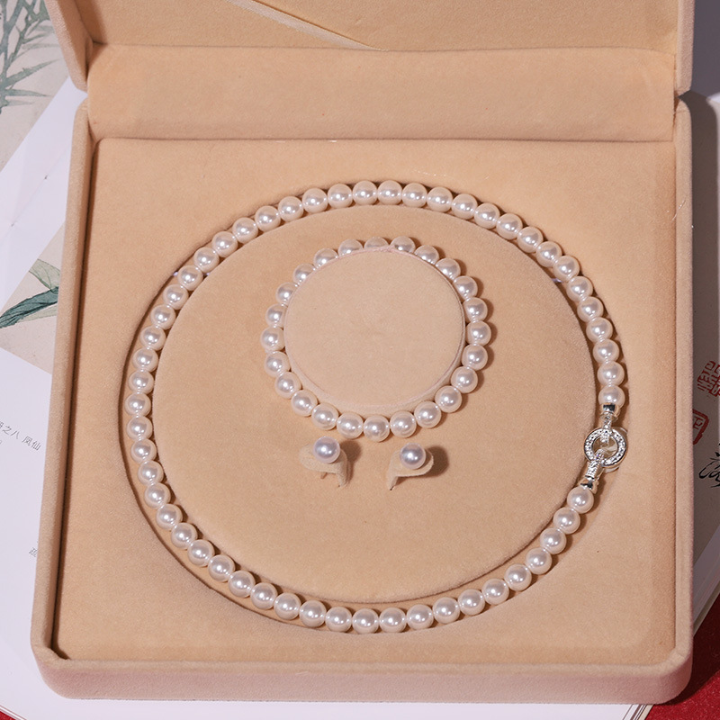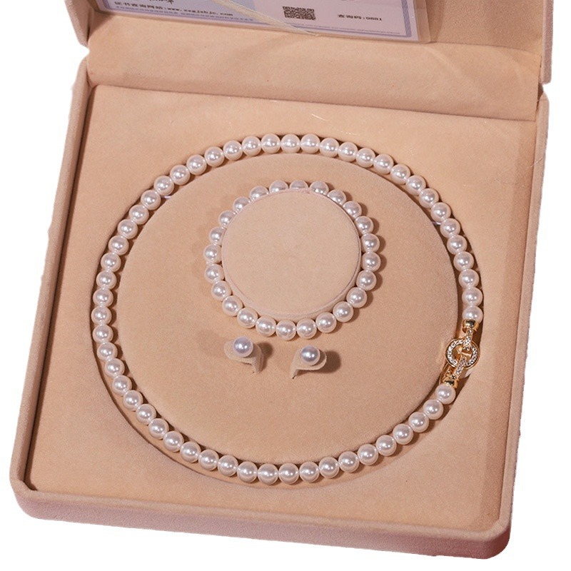 贝壳 珍珠天然深海新款外贸项链女款三件套装正圆贝珠锁骨链送妈
