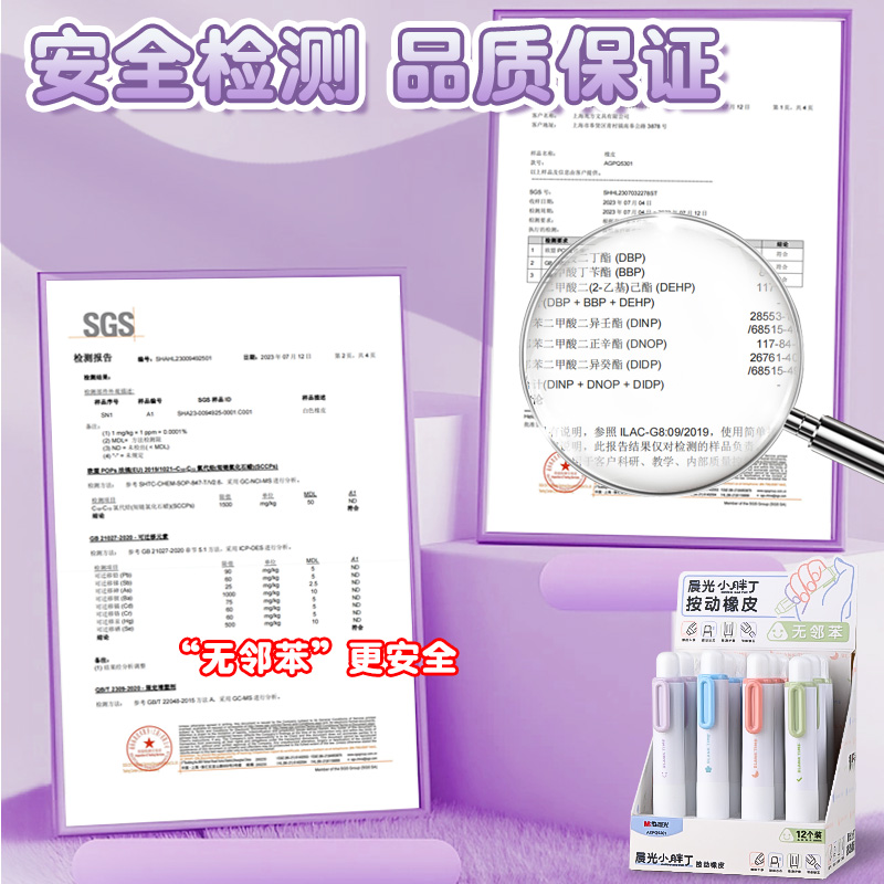 晨光按动橡皮擦小学生专用笔式小胖丁彩色橡皮幼儿园儿童少屑创意卡通可爱干净留痕少伸缩橡皮黑科技网红象皮