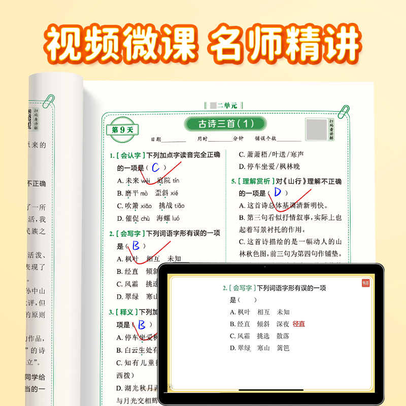 【易蓓】小学语文每日一练基础知识选择题专项训练同步人教版课本一二三四五六年级古诗字词寒假作业课后复习小升初冲刺练习册