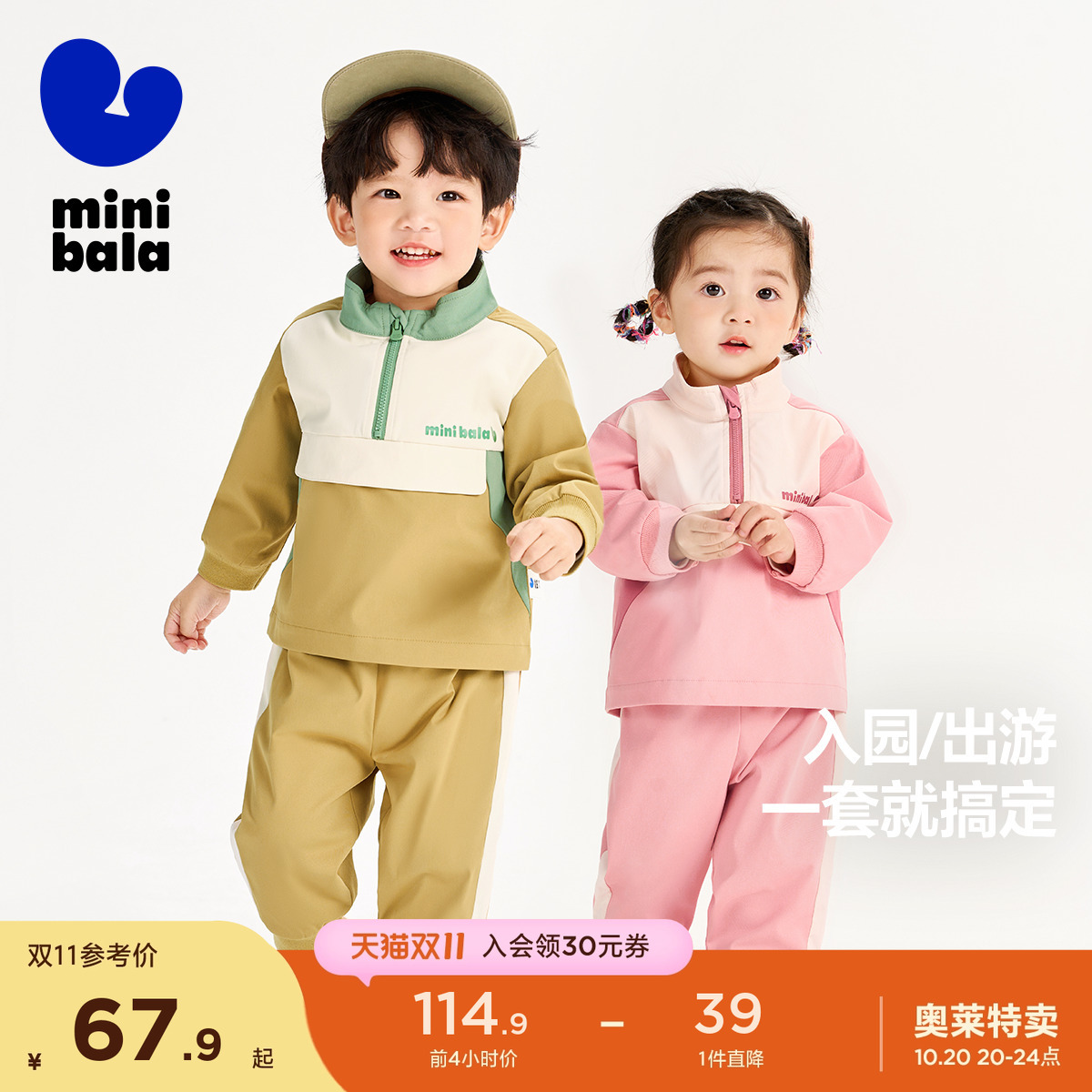 【学院风】迷你巴拉巴拉男女童春秋长袖套装宝宝撞色户外儿童运动