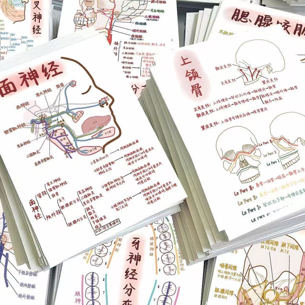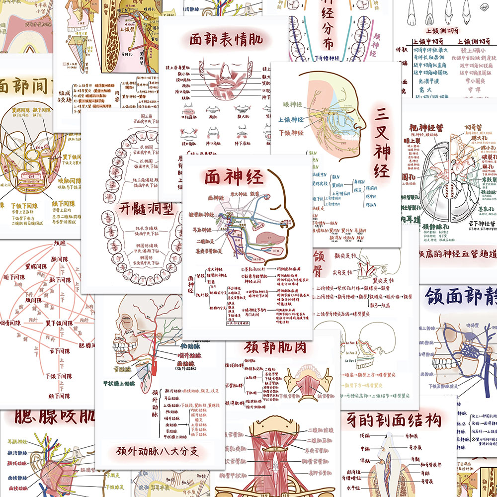34张口腔知识点贴纸口腔医学生学习笔记牙体牙髓口腔解剖生理学贴