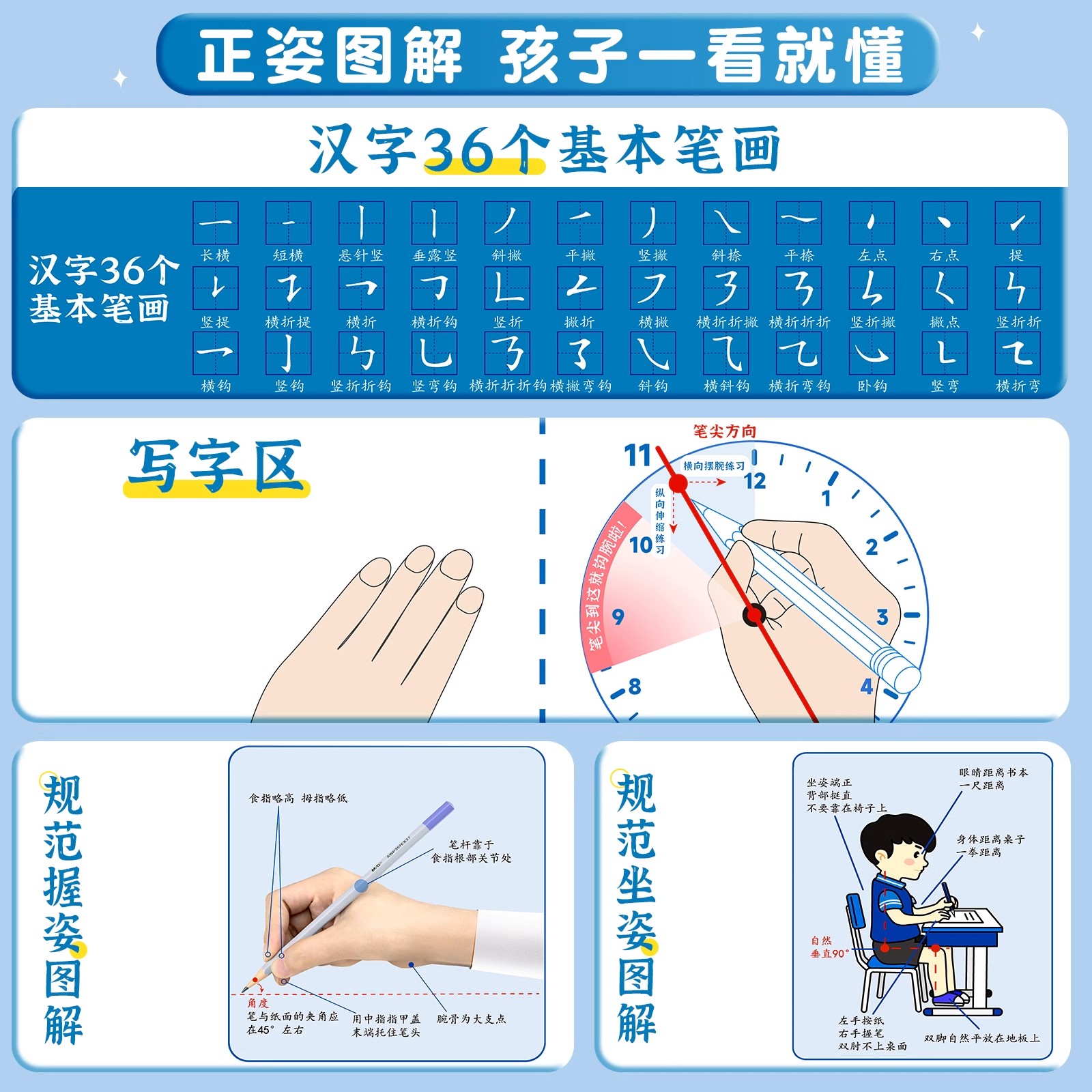 握笔正姿写字垫姿势图小学生儿童双姿规范正确姿势书写提醒垫练字作业本软垫板专用图办公用品桌垫垫子可定制