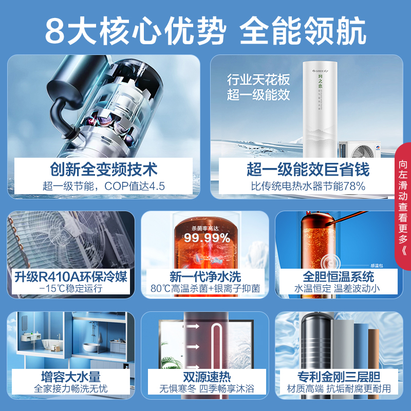 格力空气能热水器家用300升一级80℃大容量变频空气源热泵润之恋
