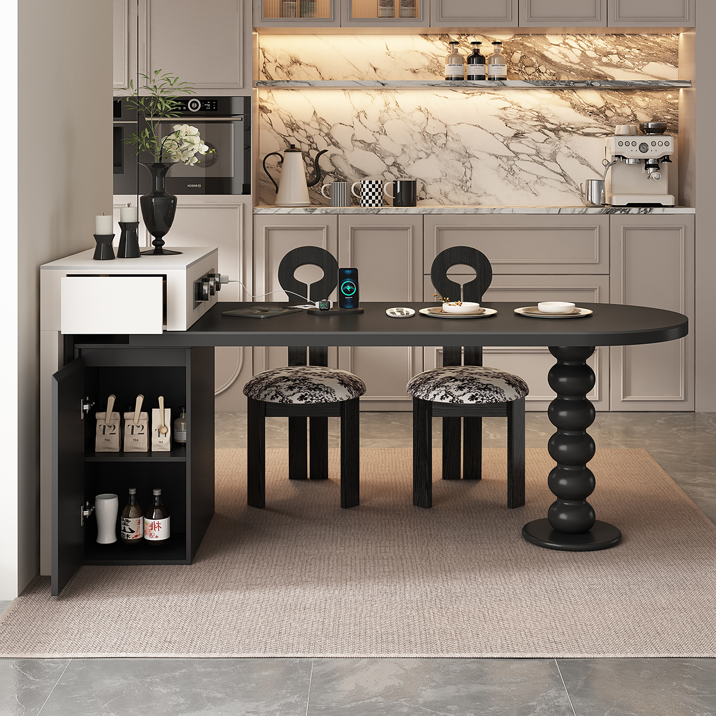 中古风餐桌超小岛台小户型可伸缩一体家用多功能极窄迷你岩板导台