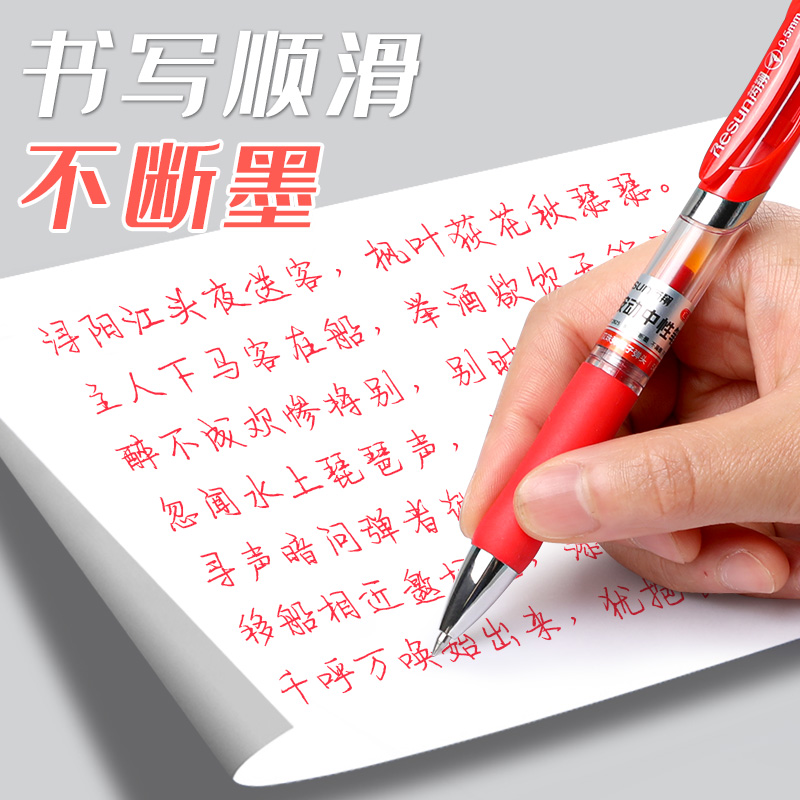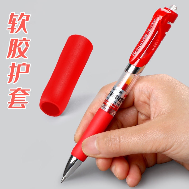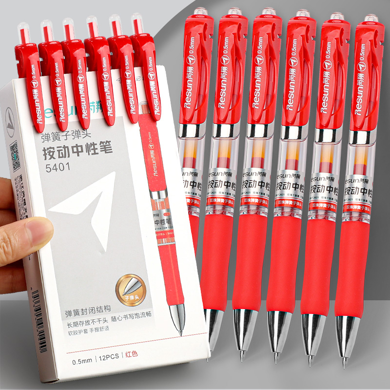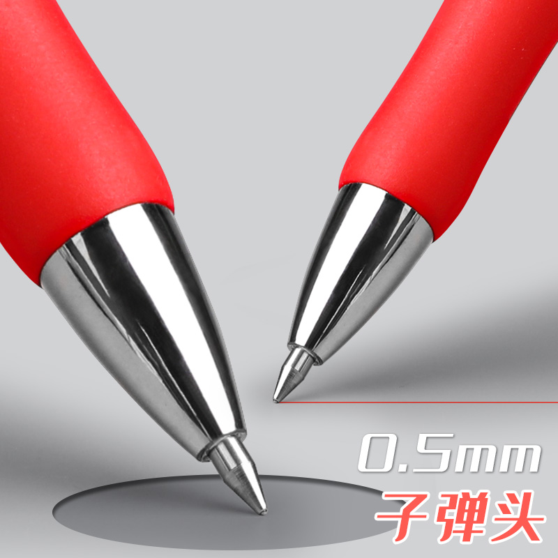 按动中性笔子弹头0.5红笔学生用品划重点文具碳素笔芯红色老师批改作业试卷家长签字握笔舒服按压款教师专用