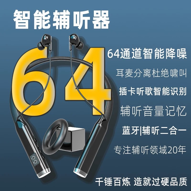 自主调节蓝牙辅听器挂脖式老人助听耳机声音放大扩音器多数字通道