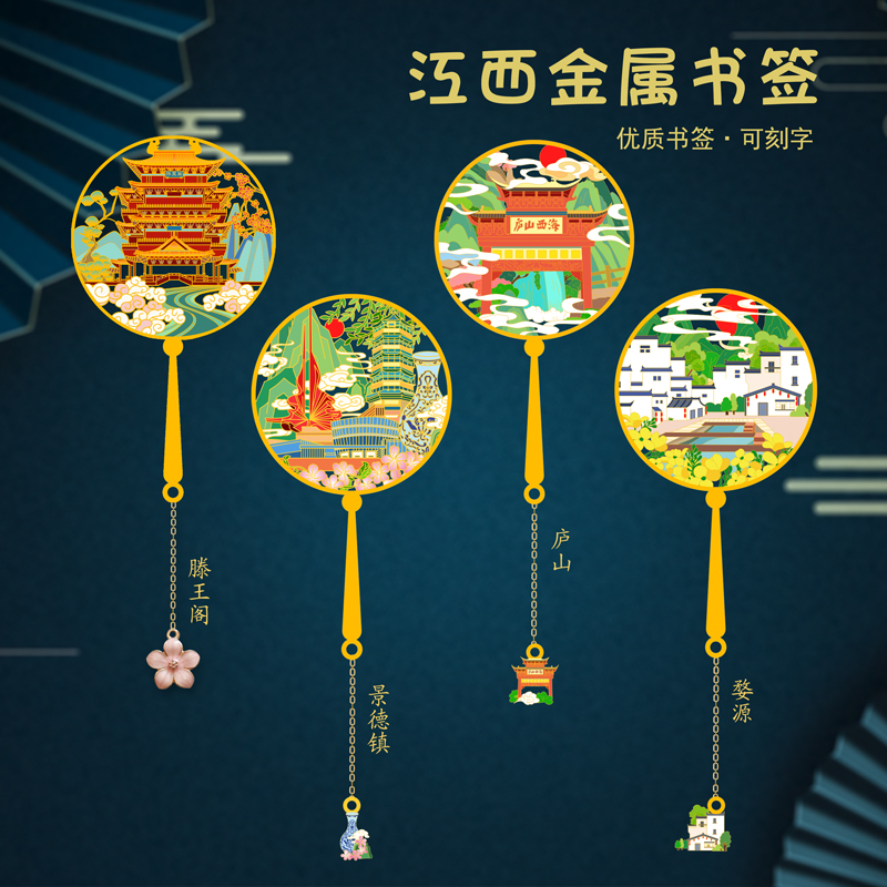 江西景点礼品名楼滕王阁景点金属书签婺源景德镇庐山景区旅游纪念品精美创意书签定制免费刻字礼物送孩子