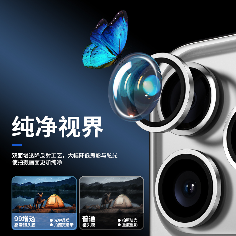蓝猩适用新款苹果17promax手机镜头膜99增透iphone17pro镜头保护膜IP17por钢化膜17PM后摄像头圈防爆全包抗摔