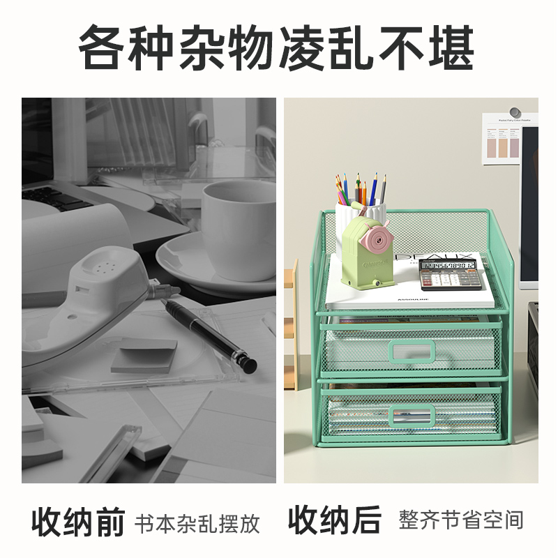 金属可抽拉文件盘文件架桌面多层办公室a4金属网纹收纳架分层文件筐立体整理资料文件档案书架加厚铁艺收纳盒