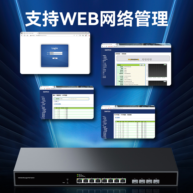 联果 4光8电万兆轻网管PoE交换机WEB网络管理VLAN划分链路聚合4KV端口防雷风扇散热POE功率200W支持BT90W输出