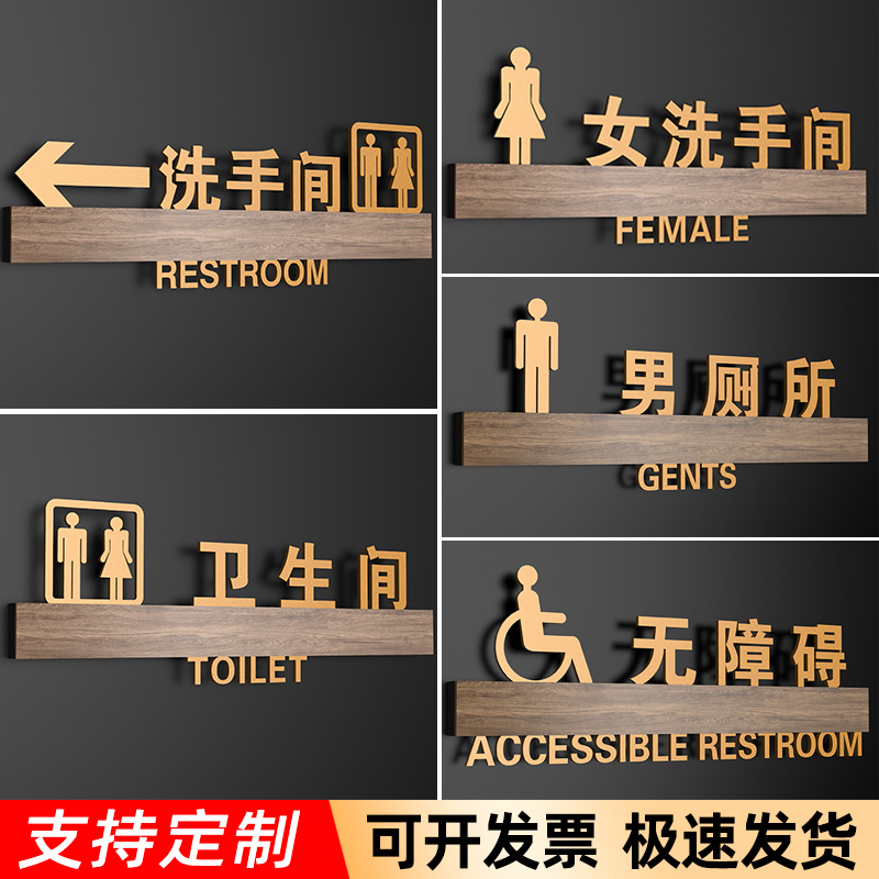 热销卫生间标识牌男女洗手间箭头指示牌公共厕所门口牌子无障碍提