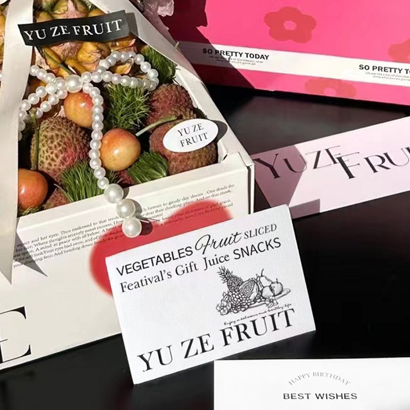 该设计法式水果卡片定制高级纹理特种纸H花束礼盒伴手礼双面小贺